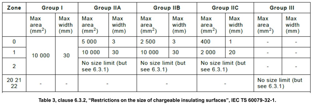 IEC 60079-32-1 “Explosive Atmospheres Part 32-1 Electrostatic Hazards – Guidance”.
