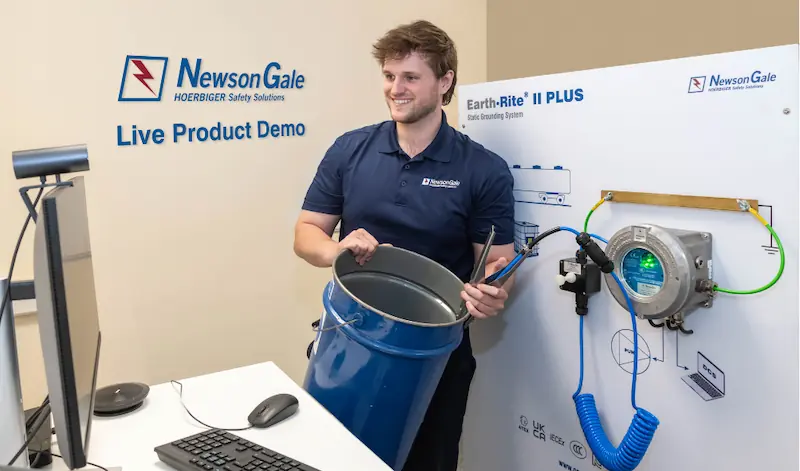 The ‘plug and play’ connector can interface with all Newson Gale dual core systems to provide earth monitoring capability on a wide range of mobile processes and equipment where generic earthing clamps cannot be used.