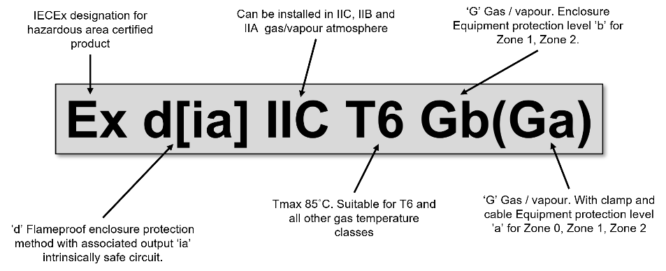 The techniques described in IEC 60079 can be combined to achieve a desired set of outcomes. This combination of techniques must be assessed as a single system described as “Ex Equipment”. Assuming the product passes the necessary set of design and testing standards carried out by a notified body (for ATEX) and/or an ExCB (for IECEx), the products will be marked with the details that enable the specifier to match the product with appropriate hazardous area classification details.