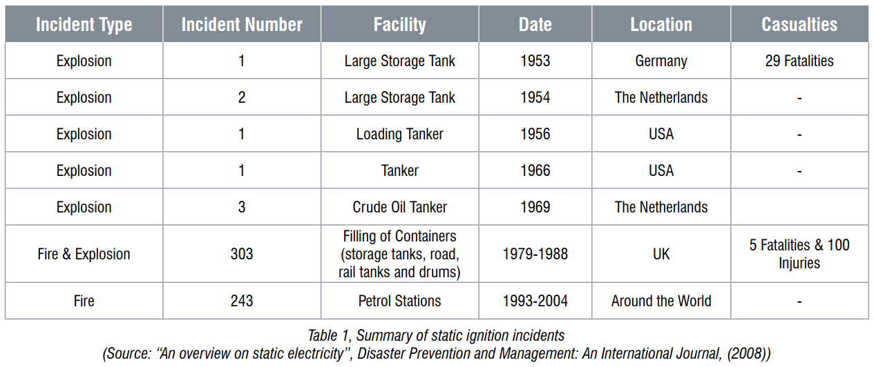 Each day, there are fires and explosions caused by the ignition of flammable and combustible chemicals. One of the most common causes of ignition is a spark caused by a sudden discharge of accumulated static electricity.